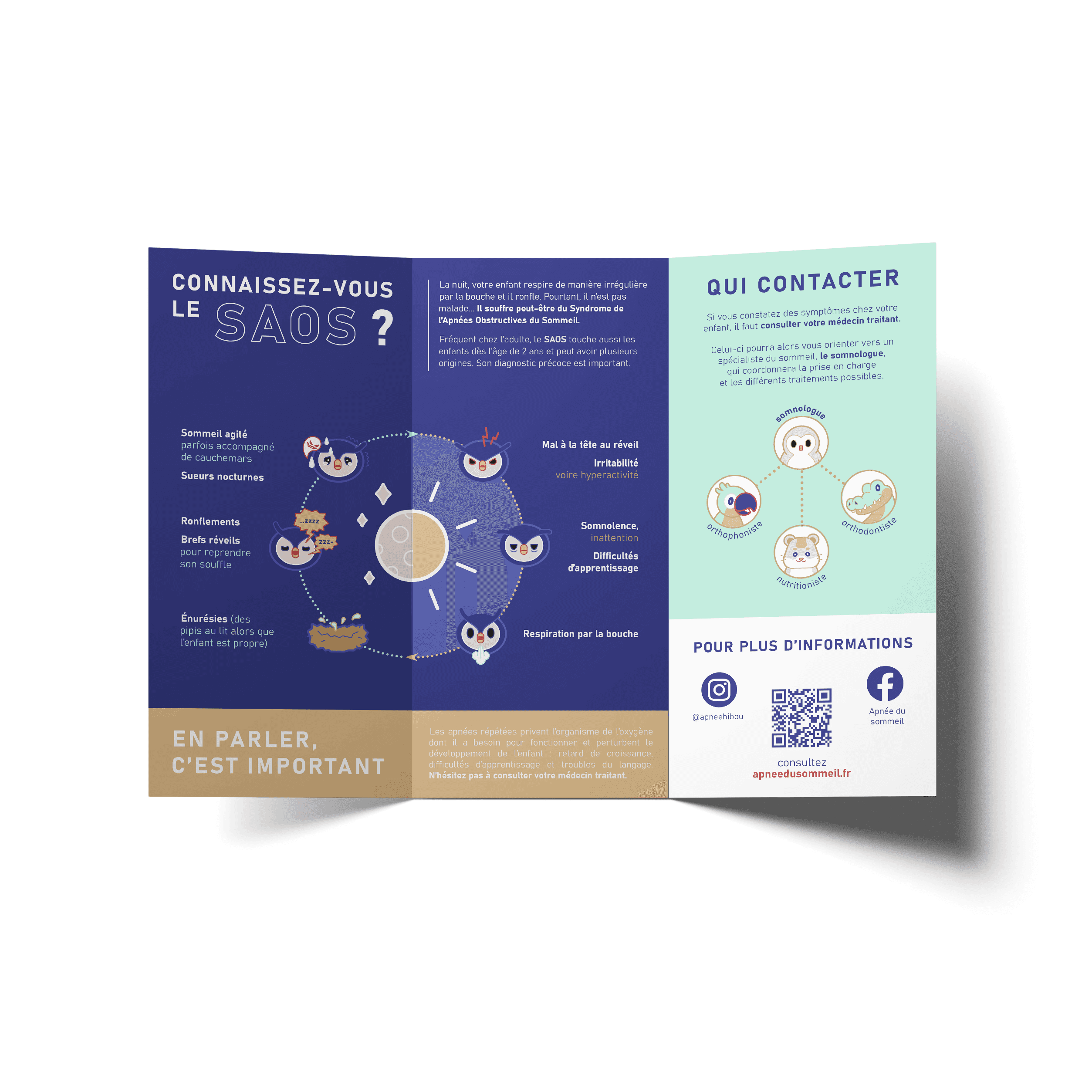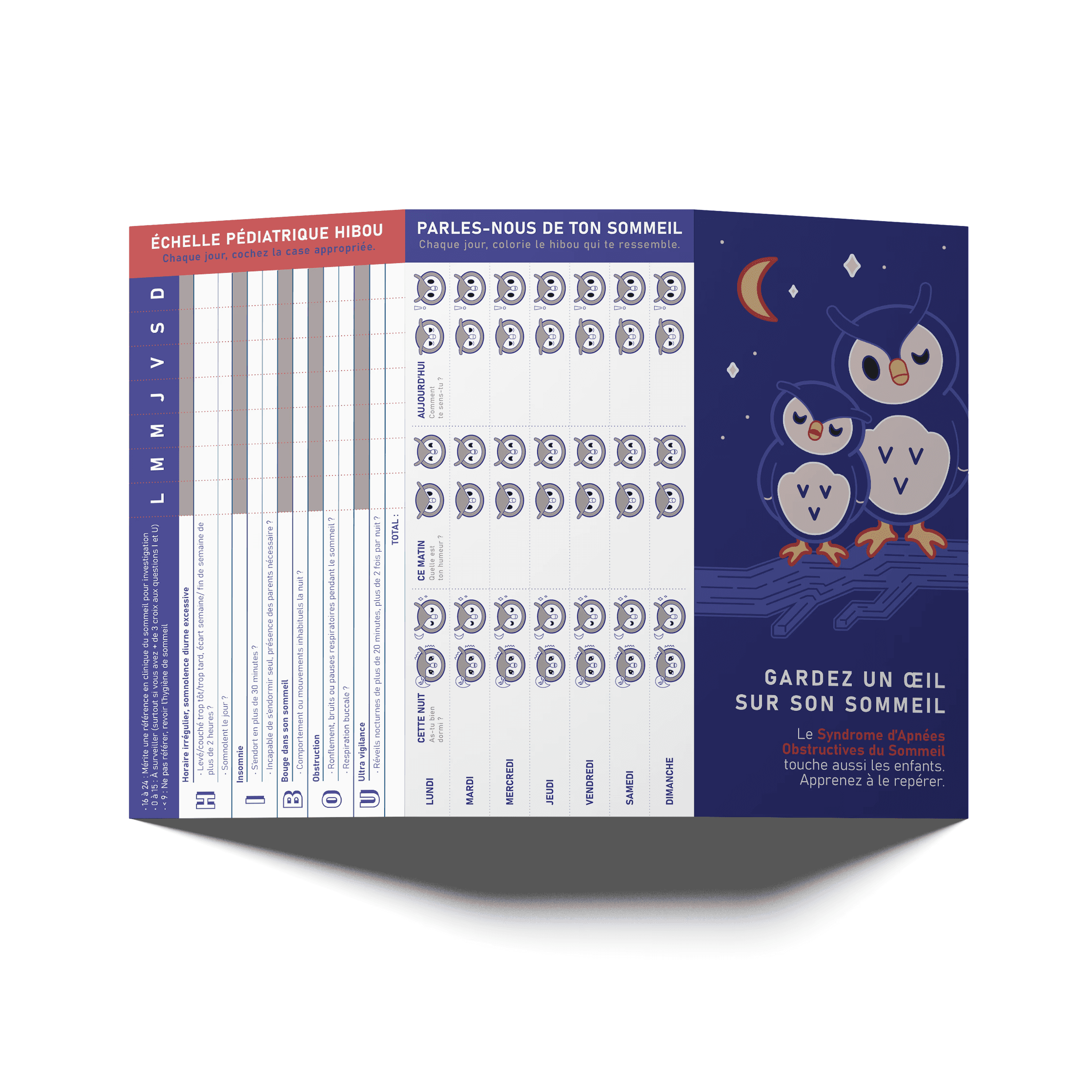 On World Sleep Day, two medical students and I created an awareness campaign about sleep apnea syndrome in children (SAOS). This flyer is available to families to help them identify the symptoms and screen for the condition using the HIBOU test, accompanied by a self-test for children.